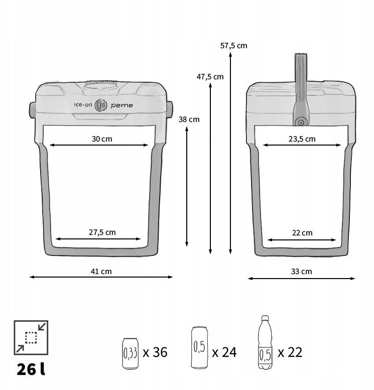 - Zdolność utrzymywania chłodu: 14-18°C poniżej temperatury otoczenia
