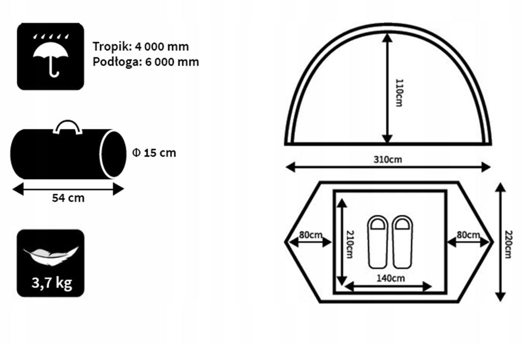 - Wymiary namiotu: 310 x 140 x 110 cm (dł. x szer. x wys.)